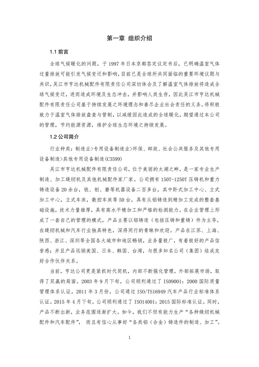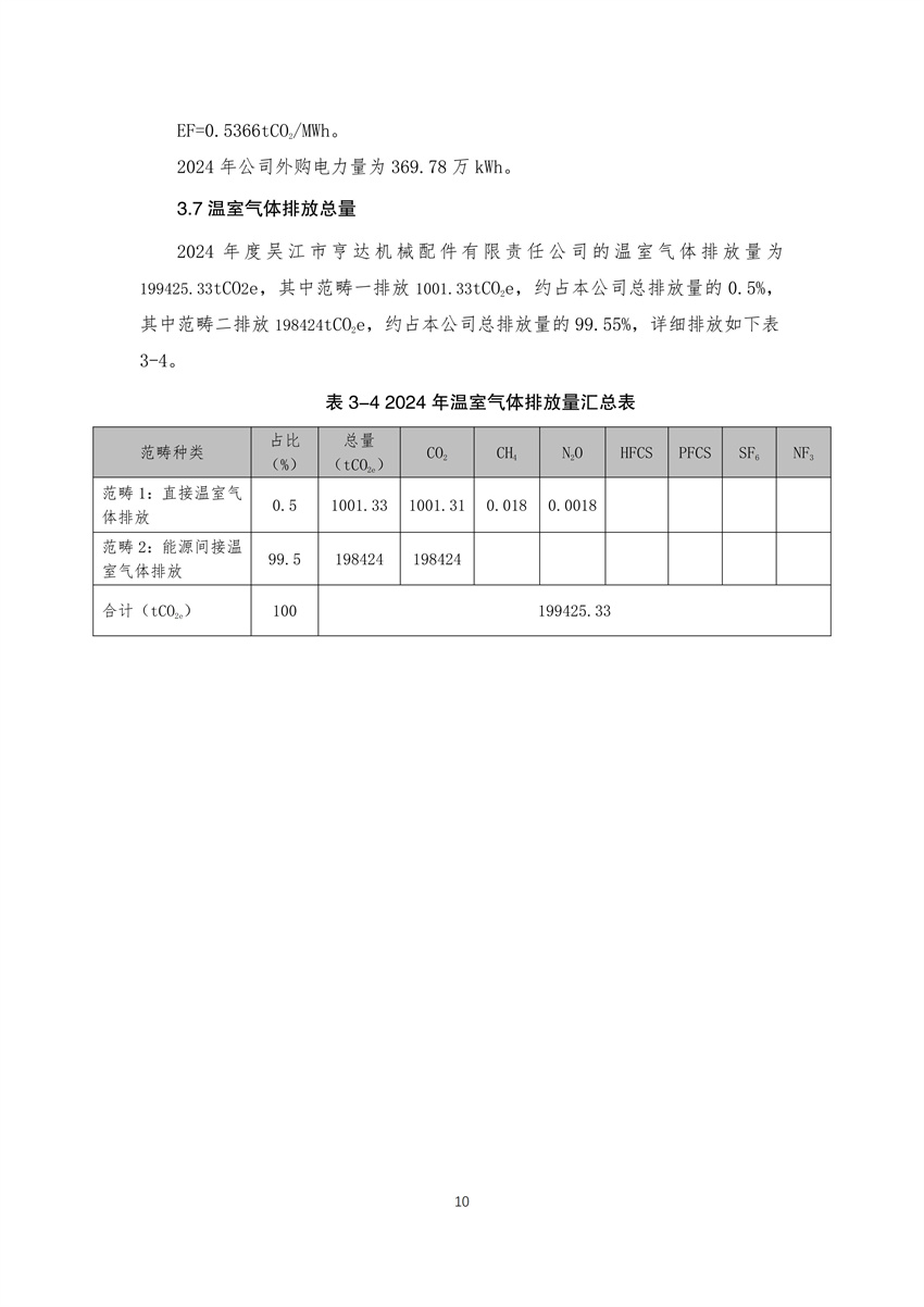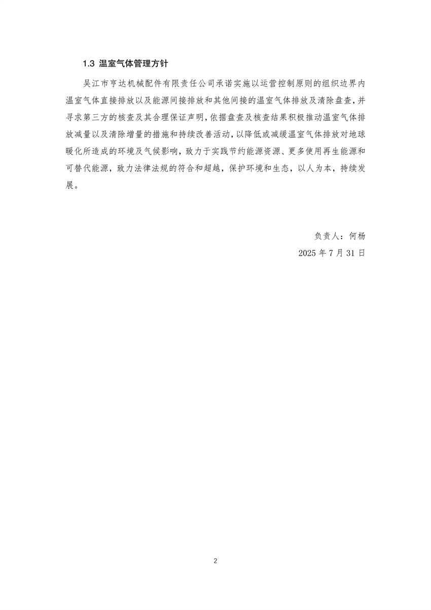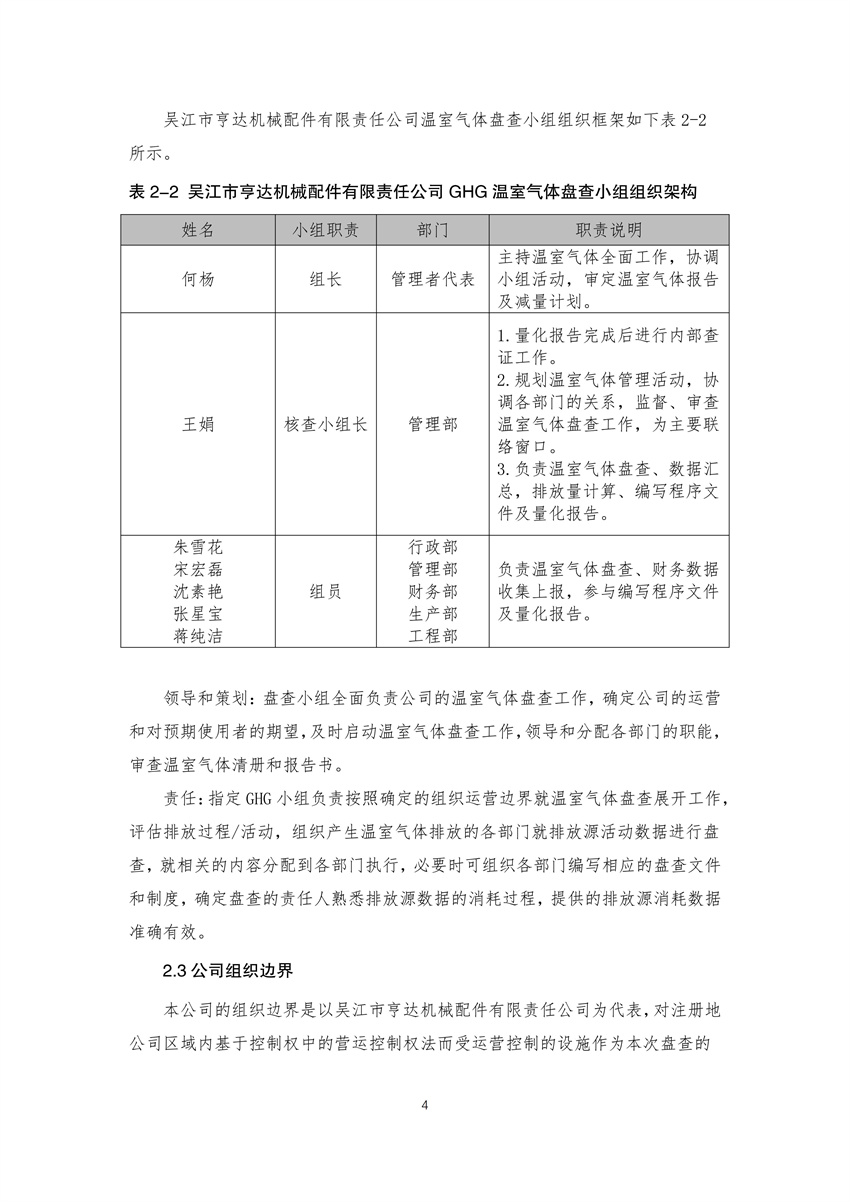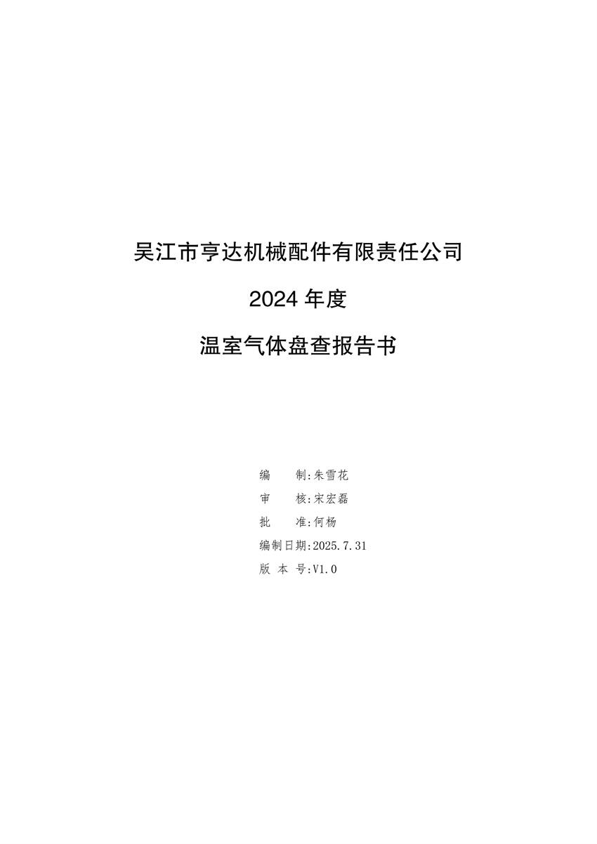 吴江市亨达机械配件有限责任公司2024 年度温室气体盘查报告书
